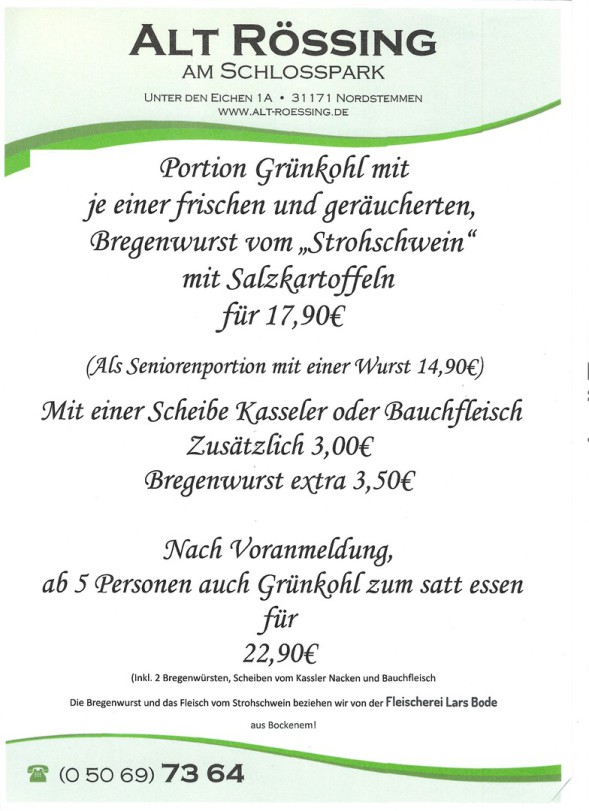 Ab Sofort geht es mit Grünkohl wieder Los!